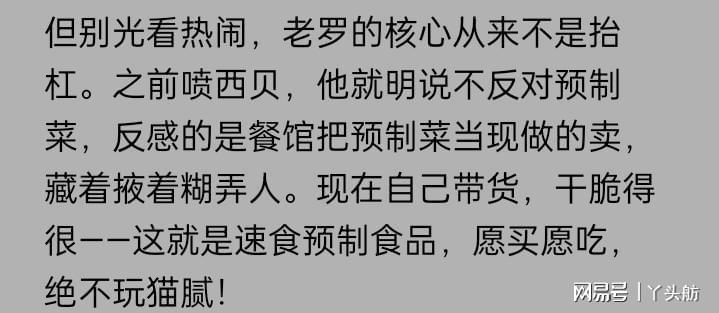 罗永浩直言不讳地表示:“这面开水一冲就能吃,你说是不是预制菜?就这智商,能开通微信支付宝都算奇迹,家里人都不管管吗?”这番话一出,原本还想继续“杠”的网友瞬间哑火,不再提及此事。