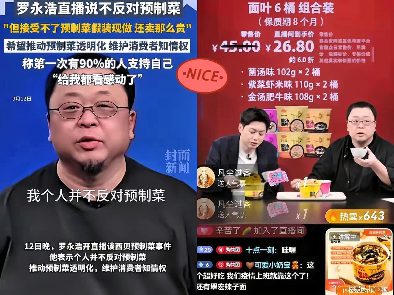 10月1日,一则关于罗永浩直播的帖子在网络上引发了广泛关注。据网友描述,罗永浩在直播中因被问及所售酸汤面是否为预制菜,而直接回怼网友,场面一度十分激烈。