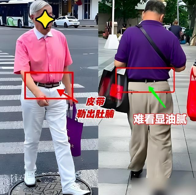 很多兄弟觉得不系皮带裤子会掉,但你知道吗?皮带勒上去,会把腹部的肉分成上下两截,活脱脱勾勒出个“游泳圈”的轮廓。这种“此地无银三百两”的穿法,反而让肚子更显眼。