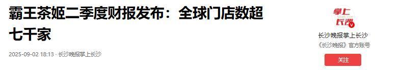 4.长沙晚报掌上长沙:《霸王茶姬二季度财报发布:全球门店数超七千家》2025-09-02