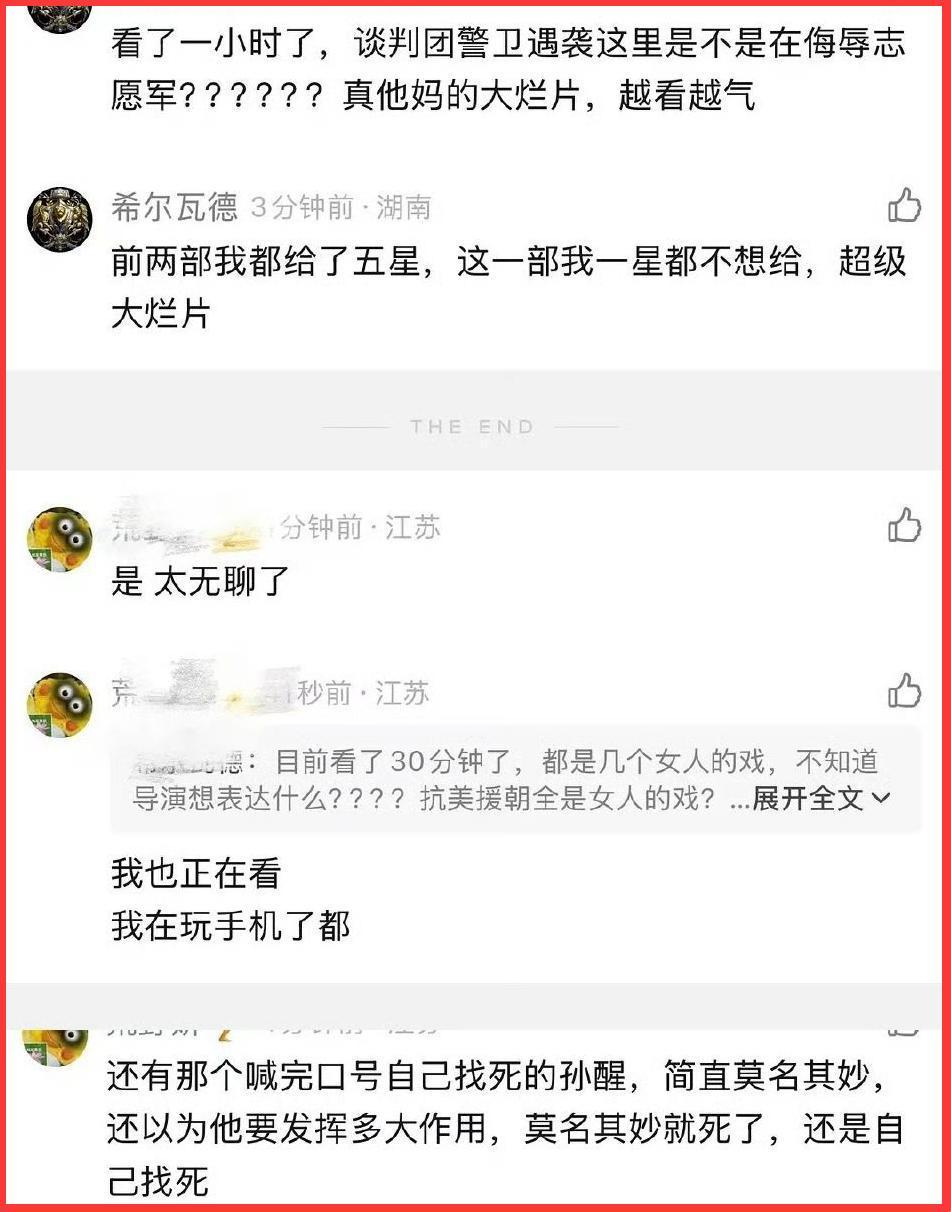 第二部中,美军突然潜伏到后方袭击我军,这个情节在当时被骂的不轻,完全罔顾历史。