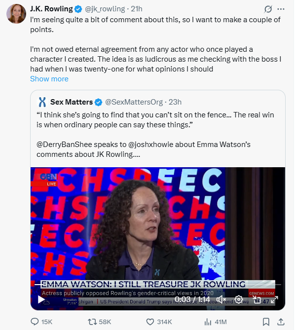 英国作家、《哈利·波特》系列缔造者J.K.罗琳近日在社交平台发布长文,直指系列电影主演艾玛·沃特森(赫敏扮演者)与丹尼尔·雷德克里夫(哈利扮演者)的言行。她特别批评沃特森'根本不知道自己有多无知',并揭露在2020年自己遭受舆论围攻期间,沃特森公开发表的争议言论直接导致其收到的死亡威胁激增,而事后仅寄来一张轻飘飘的道歉纸条。