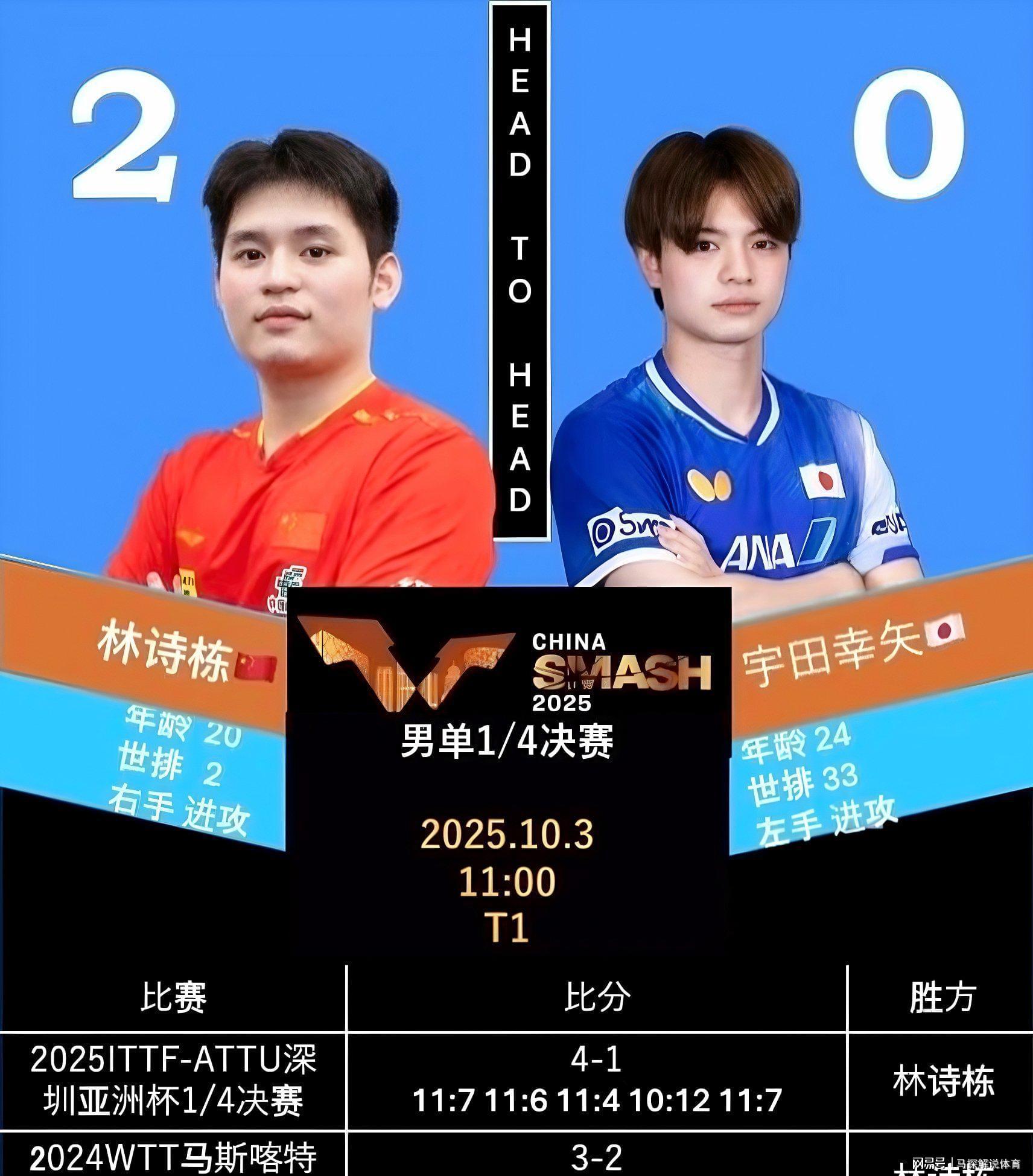 宇田幸矢的突出特点是进入状态快,在开局期往往能通过超常规的积极主动和专注而迅速打开局面。这恰恰是对林诗栋有克制效果的一种类型,因为林诗栋的防反风格容易在起手阶段被宇田幸矢偷家。不过,林诗栋与宇田幸矢过往有过两次国际赛交手,且两战全胜,占据心理优势。