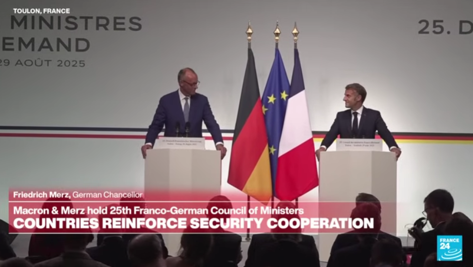 据报道,默茨和马克龙出席了两国在土伦举行的部长理事会会议。在此框架下,两国还将举行防务与安全理事会会议。