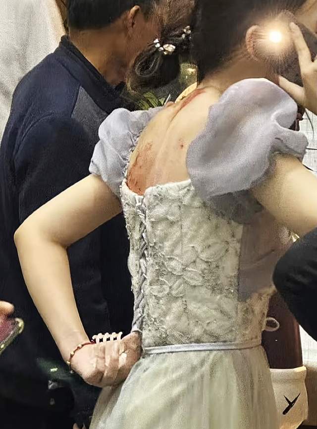另一段视频画面显示,有顾客从废墟中艰难逃生,酒店门口停着几辆救护车,有人被用担架抬出来,迅速转运到救护车上。一位疑似伴娘的女子背上的血迹清晰可见,满脸惊慌地逃出来,让人揪心不已。