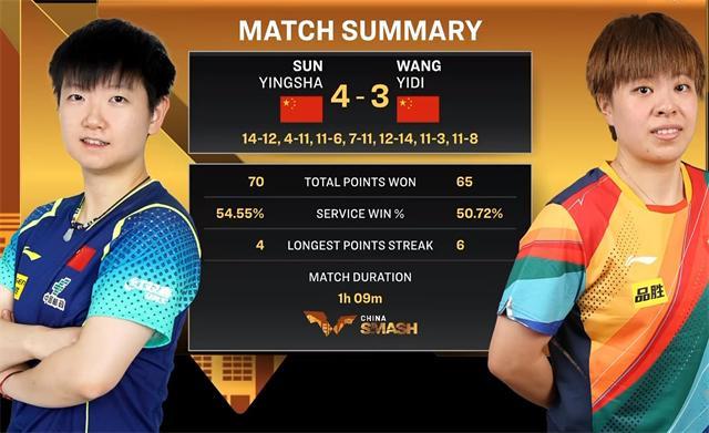 在WTT中国大满贯女单1/4决赛中,国乒上演了一场焦点内战。世界排名第一的孙颖莎与队友王艺迪展开七局鏖战,最终孙颖莎以4-3(14-12、4-11、11-6、7-11、12-14、11-3、11-8)惊险逆转,晋级四强。这场跌宕起伏的对决,不仅展现了两位选手的顶尖实力,更因现场球迷的倾向性助威引发热议。