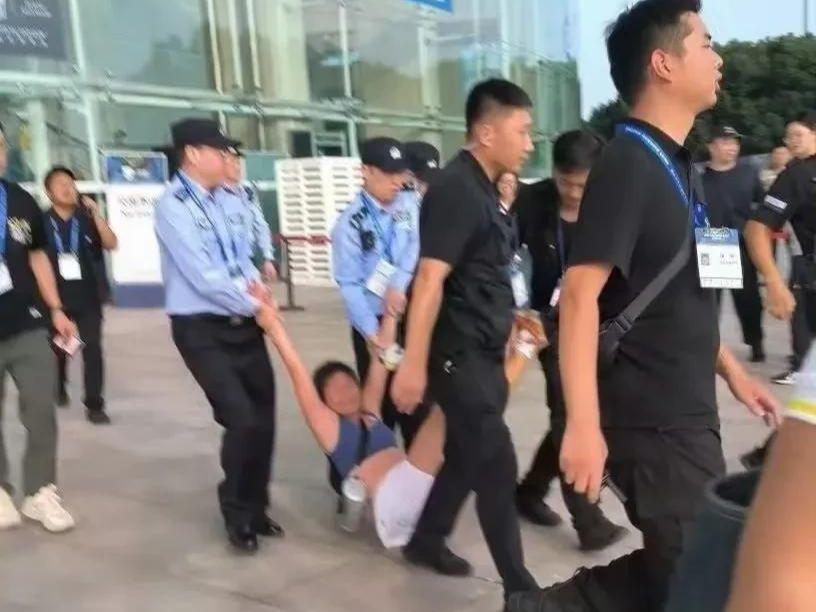 其他观众也是无可奈何,看着她发疯式的表演。当时,维护赛场秩序的警察也很快到了现场,对女子进行劝告。她不但不听劝,还对着别人吐口水,情绪已经失控。
