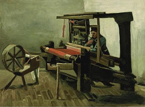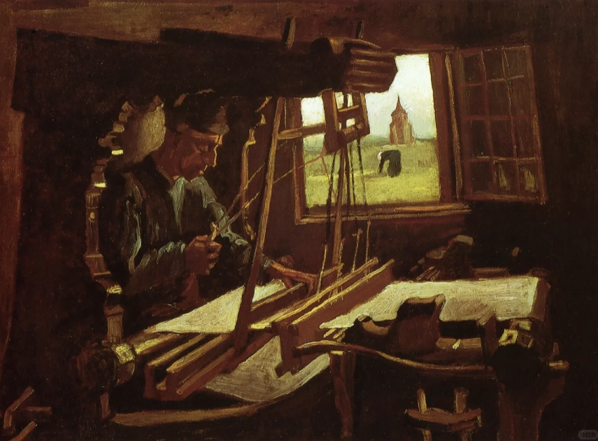 《织布者》中,梵高描绘工人专注地操作织机,一匹布在工人的操作下已然成型,或许织布者就是在这样日复一日的单调的生活中,像无名英雄一样,为人们创造出不可或缺的秩序。