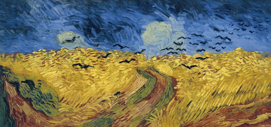 即便在精神错乱的末期,他画的《麦田里的群鸦》中,大地的脉搏仿佛正与乌鸦群共舞,梵高依旧以一种与常人不同的方式,表达着对土地深沉的歌颂。