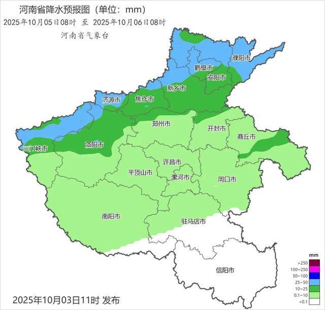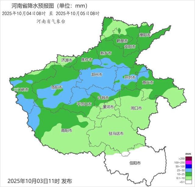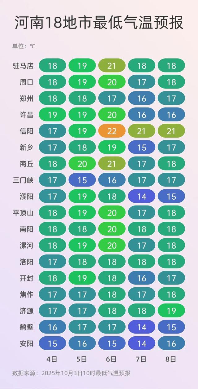 今天下午到夜里:三门峡南部、洛阳南部、平顶山、许昌、漯河、周口、南阳、驻马店、信阳等地将有小雨或零星小雨,其中南阳部分县(市、区)将有中雨。