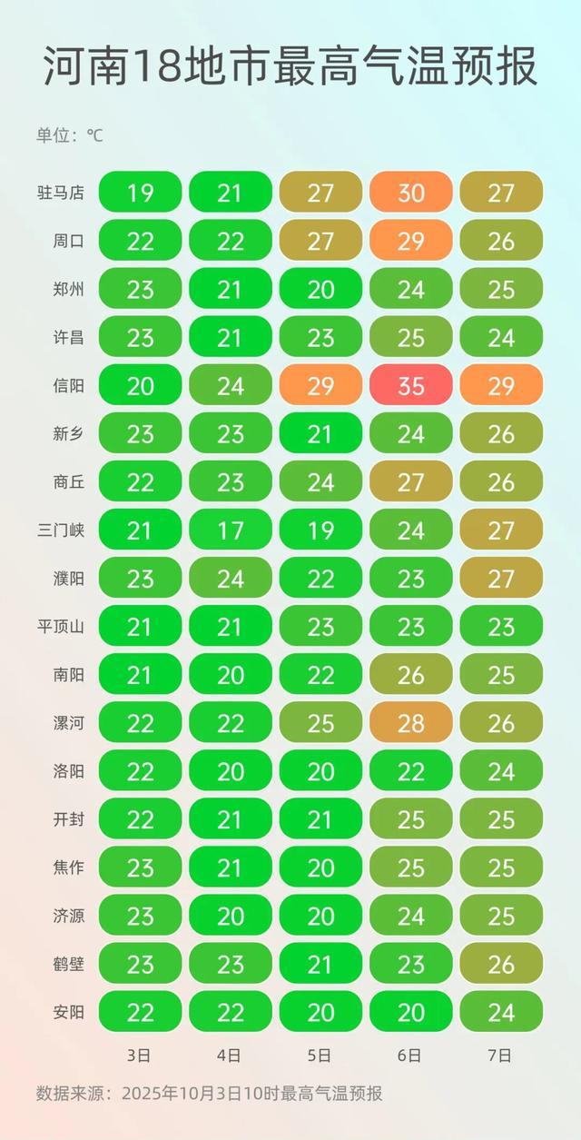 受持续性阴雨影响,今后三天河南省大部地区最高气温多在20℃左右。6-7日,随着降雨短暂停歇,部分地区气温略有回升。但湿凉感仍将持续,请大家注意及时更换衣物,谨防感冒。