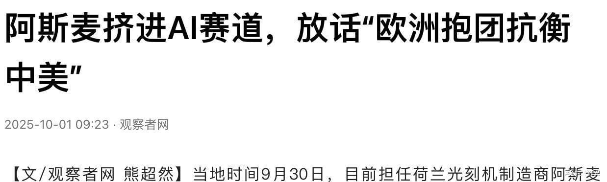 就在欧盟推进《芯片法案2.0》的关键节点,光刻机巨头ASML的13亿欧元投资计划引发震动。据法国前财长、现ASML顾问勒梅尔披露,该公司正通过收购法国AI芯片企业,构建覆盖设计、制造、应用的完整产业链。他更公开宣称:“此举旨在让欧洲在AI芯片领域获得对抗中美的能力”,并断言“美国科技股存在估值泡沫,衰退风险加剧”。