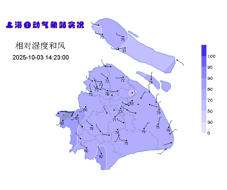 今天是假期的第三天,天气呈现出阴云、阳光与阵雨交织的“混搭”风格。降水较为零散,雨量不大,主要出现在南部地区。气温方面表现稳定,全市最高气温在28~31℃之间,市区徐家汇站达到了29.8℃。不过,由于空气湿度大部分时间都在70%以上,体感上难免会感到潮湿闷热。