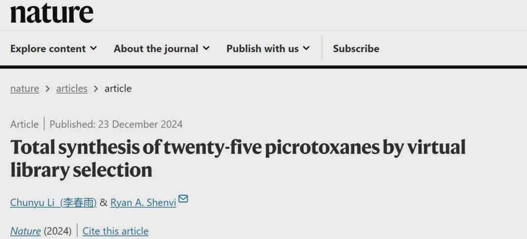 该方法作为人工或计算机辅助合成规划(CASP)的附加搜索工具,特别适用于高复杂性目标和/或在文献或反应数据库中很少代表性的步骤。相关成果以“Total synthesis of twenty-five picrotoxanes by virtual library selection”为题,发表在顶级学术期刊《Nature》上,第一作者为中国学者李春雨。