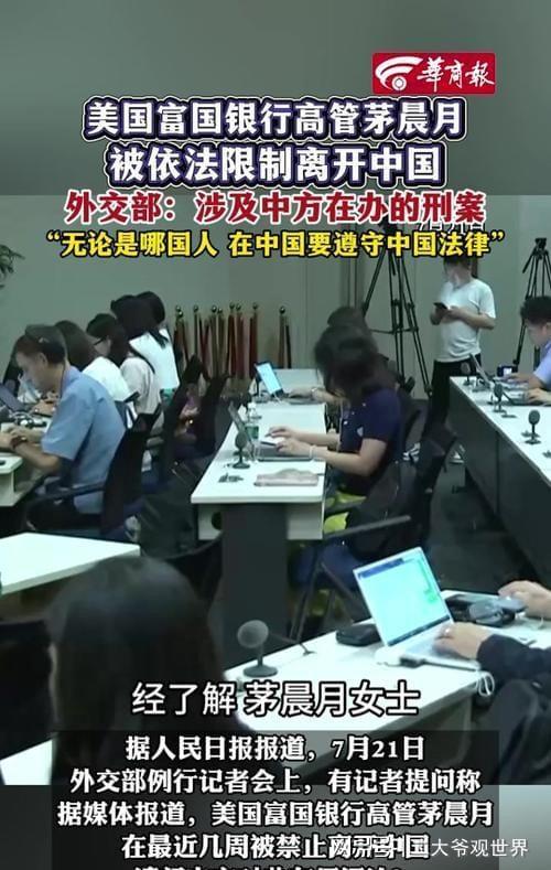 面对这种突袭,哭诉和抗议显然无用。中方迅速展开反制,就在徐泽伟被扣一周后,美国富国银行在华高管茅晨月被限制离境,因其卷入刑事案件需配合调查。