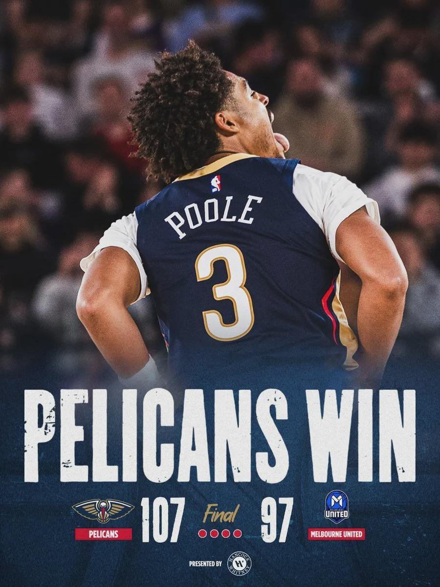 值得一提的是,本场比赛22年NBA总冠军后卫、鹈鹕新援普尔也完成了他的加盟首秀。作为首发控卫出战约20分钟,他投篮9中3,其中三分球6中1,罚球5中4,独揽11分、4个篮板、4次助攻和1次盖帽。然而,在送出4次助攻的同时,他也出现了3次失误,正负值-3为首发五虎中最低。