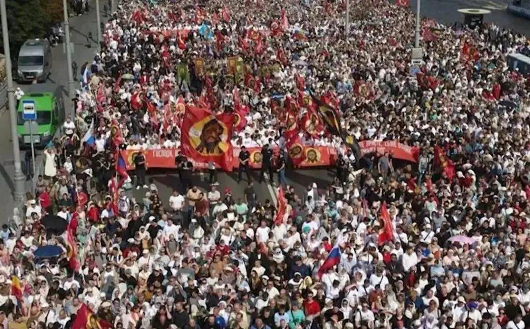 与此同时,在9月7日,莫斯科举行了一场从救世主大教堂到新圣女修道院的宗教游行。一开始本来只是一场打着信仰旗号的活动,结果场面一度失控。