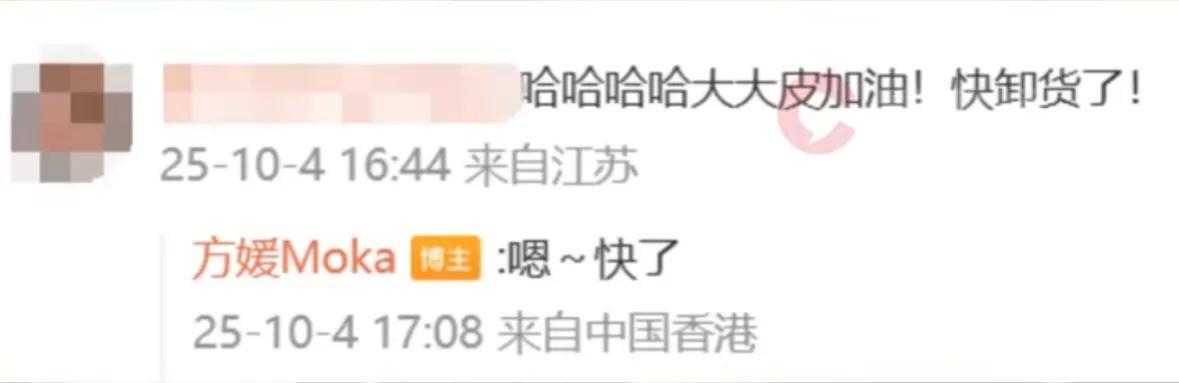 在方媛的留言下,网友们纷纷留言表示关心和祝福。有网友留言称:“快卸货了”,方媛也亲切地回复道:“快了”。这一互动让粉丝们感受到了方媛的亲和力和幸福感,也进一步证实了她孕晚期的状态。