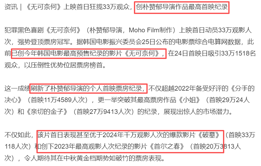 那就是在前些天在韩国上映的朴赞郁新片《无可奈何》。