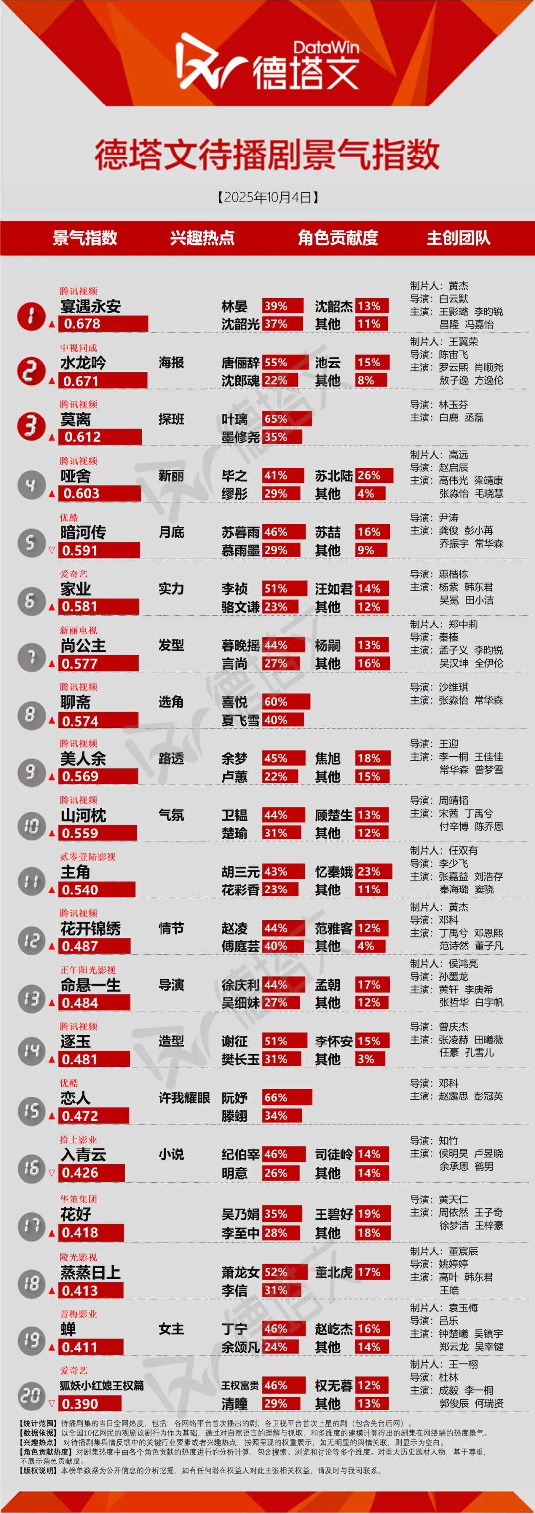 在当日剧集市场中,《许我耀眼》凭借其高热度剧情持续攀升,而《一笑随歌》则成功突破景气指数2的关卡,成为市场焦点。