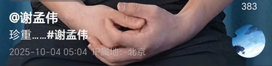 10月4日,演员谢孟伟(因饰演《小兵张嘎》中“嘎子”一角广为人知)通过社交平台正式宣布退网。他在视频中向观众及媒体致歉,表示因个人行为引发争议,无法接受媒体采访,并强调“作为男人该有的担当必须承担”。