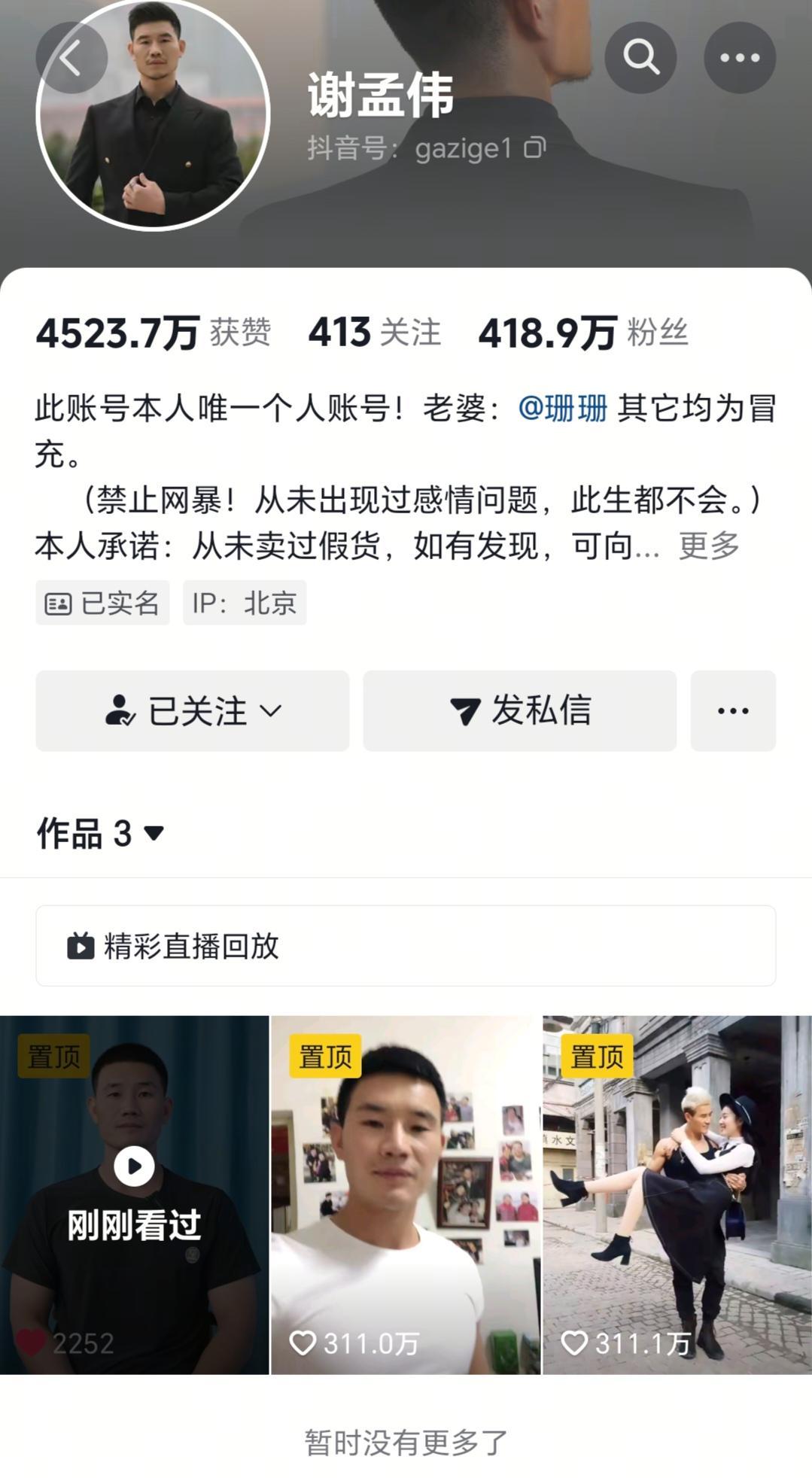 回顾争议起源,谢孟伟承认因“穿着制服直播”等不当行为得罪他人,导致直播间被封、橱窗功能长期无法恢复。尽管尝试注册小号复出,但均以失败告终。目前其账号仅剩3条视频:1条道歉声明和2条多年前的旧作,带货变现渠道彻底中断。