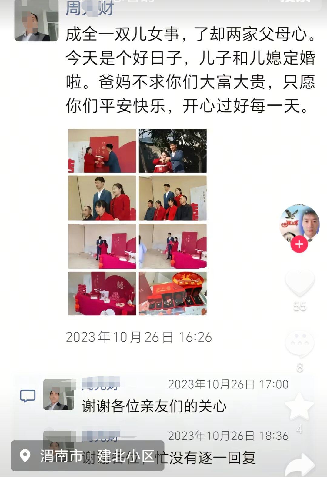 其实并非如此。从新郎父亲2023年发布的订婚照可以看出,他们订婚已经两年了。周某阳29岁才结婚,应该不是关系不好,而是中间发生了很多事情。