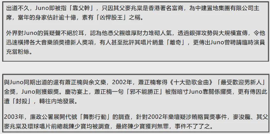 麦浚龙的父亲是港圈商界大佬,被誉为凶悍股王。麦浚龙进入娱乐圈后,迅速横扫各大奖项新人奖,却因此被质疑是靠着富二代身份花钱买奖。