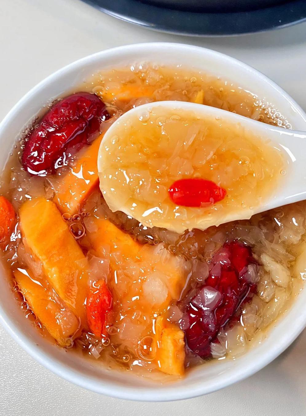 这道汤羹堪称‘平民燕窝’,银耳胶质满满,红薯红枣补气血,秋冬季节喝上一碗,脸色都红润起来。
