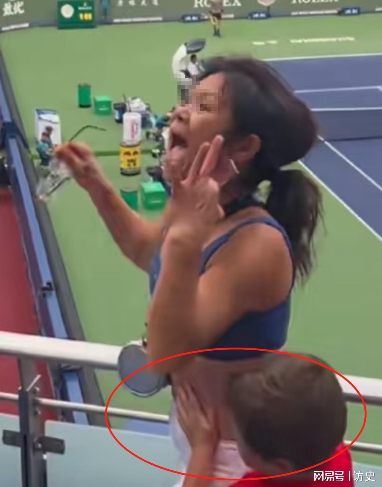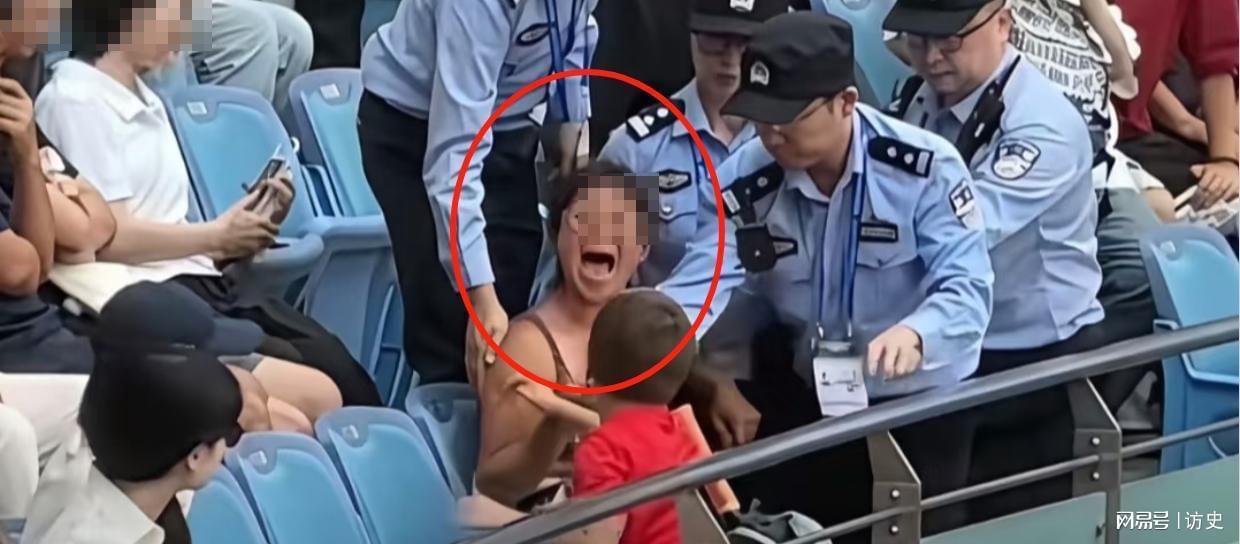 在其他观众全神贯注看比赛时,她先是站在看台上持续嘶吼、上蹿下跳,无素质的行为严重扰乱了现场秩序,引得众人不满,甚至都影响到了比赛选手。