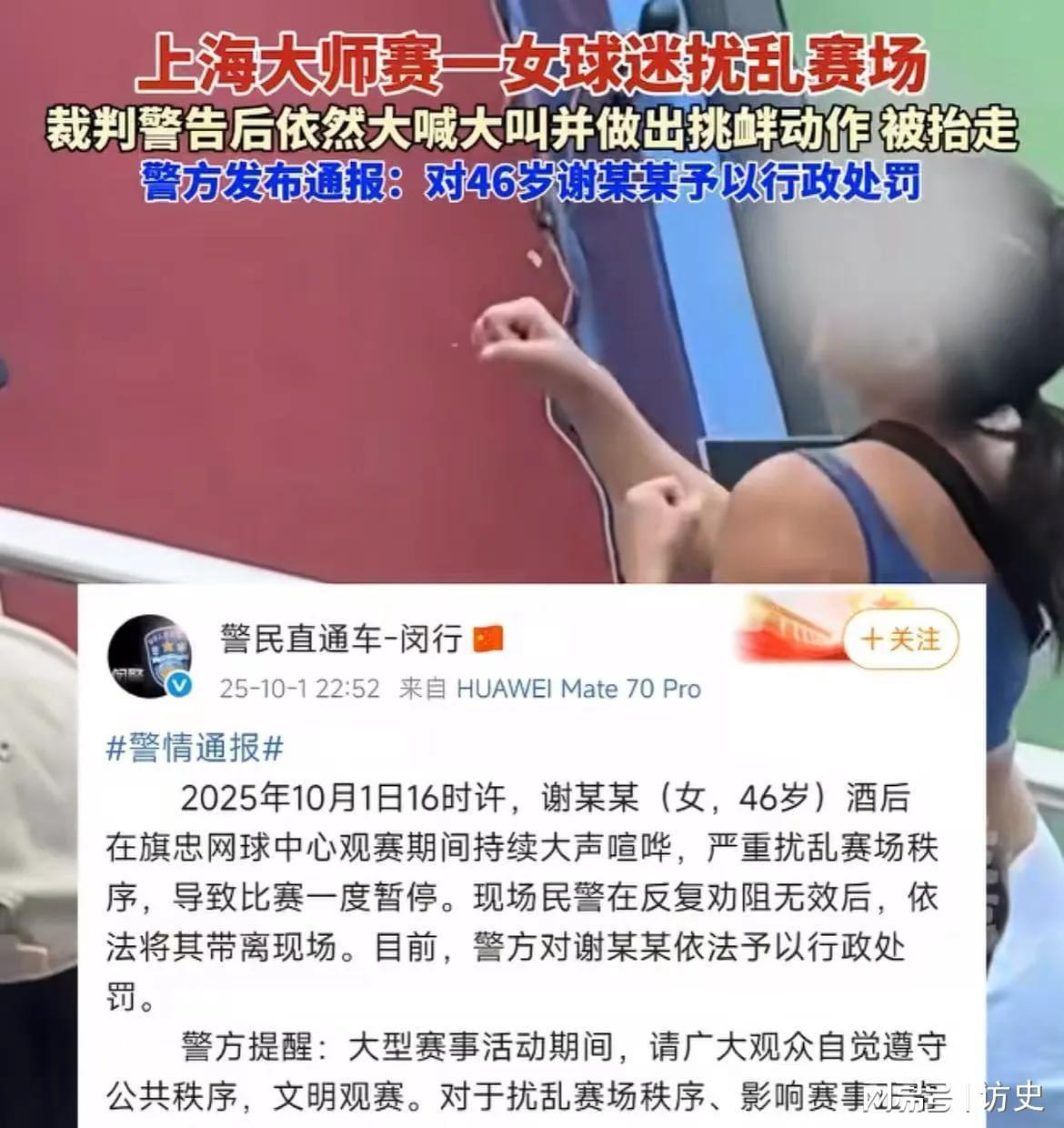 10月1日,ATP1000网球大师赛的激烈角逐中,46岁的谢某凭“实力”成功爆火,在现场不仅大喊大闹,还不听劝阻,一直我行我素,上演一场“特权闹剧”。