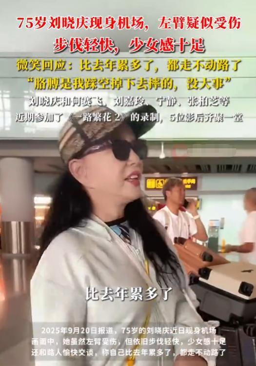 如今的刘晓庆已经75岁高龄,但她身上的“拼劲”却丝毫未减,甚至比许多年轻艺人还要努力。在录制综艺节目《一路繁花》第二季时,她踩空摔倒导致左臂受伤打上石膏。医生建议她卧床休息,但她仅休息了很短的时间就带着受伤的手臂回到现场。镜头前她依旧保持着微笑尽量不影响节目进度。