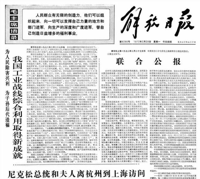 中美上海公报是尼克松访华的主要成果,其中没有任何涉及苏联的内容,还有中国对坚持支持第三世界国家民族独立和解放运动的声明。