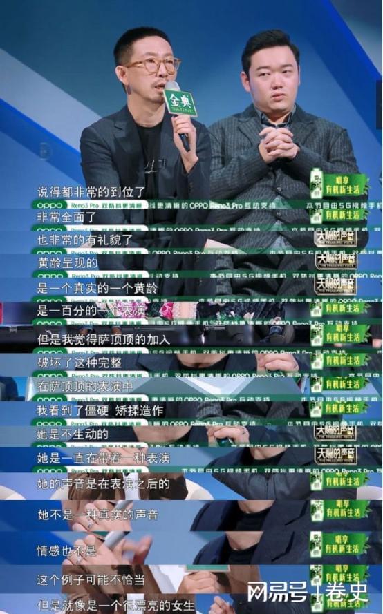 看着这样一位歌坛前辈,在台上接受一位缺乏代表作的后辈评点,场面多少有些令人唏嘘。