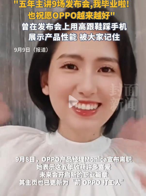 然而,就在事业巅峰期,莫妮卡却选择卸下“OPPO打工人”的身份,转身成为“前产品经理”。令人意外的是,她的个人社交平台粉丝非但没有减少,反而暴涨30%。网友用行动证明:真正的专业光芒,从不需要头衔或装扮来衬托。