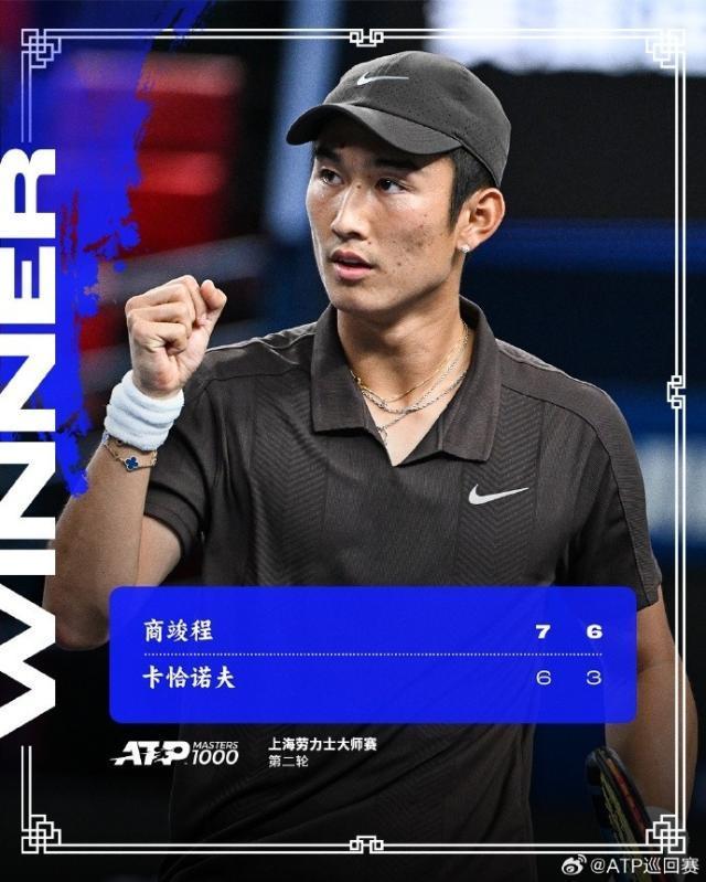 上海大师赛第二轮,商竣程2比0击败ATPTOP10选手卡恰诺夫,晋级32强。中国男选手击败TOP10胜场数: