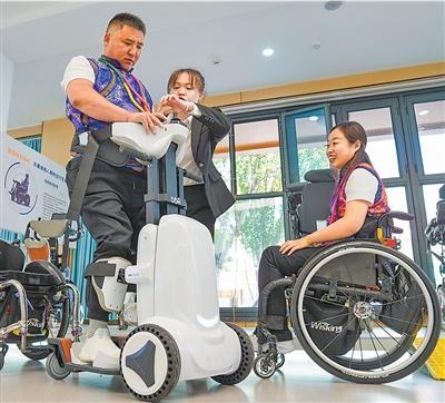 内蒙古呼和浩特的康复中心里,残疾人在站立机器人辅助下进行康复训练。我国不断完善残疾人社会保障制度,困难残疾人生活补贴和重度残疾人护理补贴制度惠及千万家庭。(王晓博 摄/影像中国)