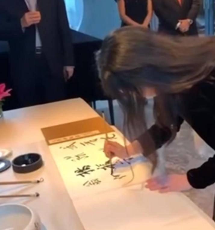 杨振宁写完后,很自然地回头跟妻子翁帆说:“达令,你也写。”