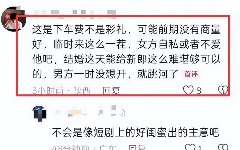 此前,网上流传着一种说法,称新郎是因为新娘索要了2万块钱的下车费,导致他在众多亲戚好友面前失了面子,一气之下才跳河轻生。然而,这一说法很快被官方辟谣,称这些都是不实传言。