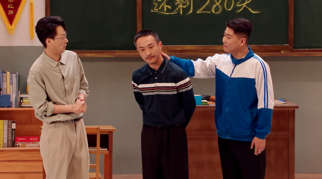 荒诞的喜剧并不是纯靠发疯,一切都有现实逻辑,杨雨光复刻了老教师的习惯,放到超龄学生的人设里,完全合理:他都上了这么多年高中了!他是这个高中最资深的人!