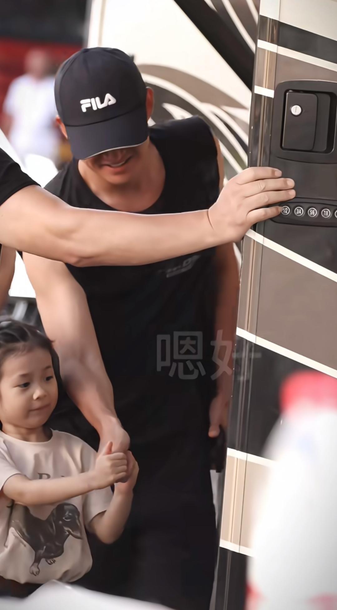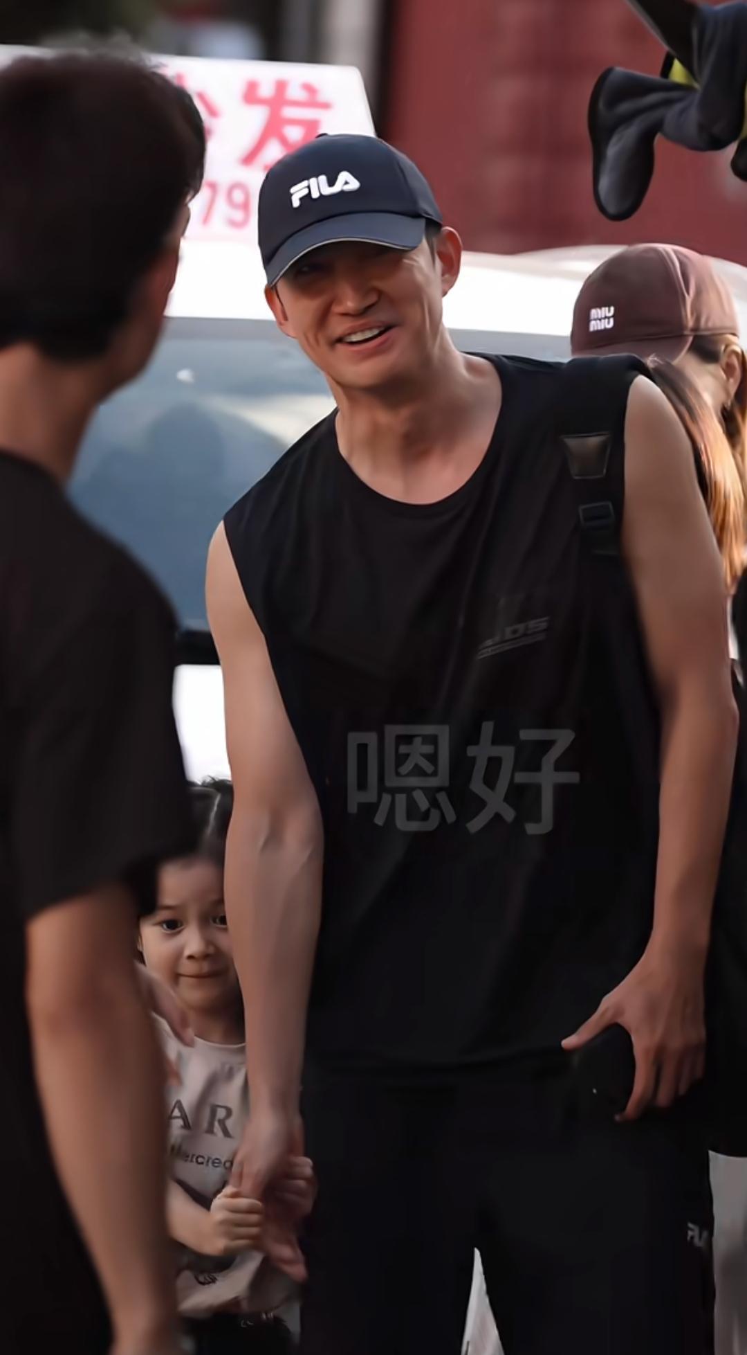 曝光画面中,王阳见到老婆女儿后高兴得不得了,这位180cm的高个俯身牵着5岁的女儿,而高斯则跟在父女俩身后,一脸幸福却插不上话。