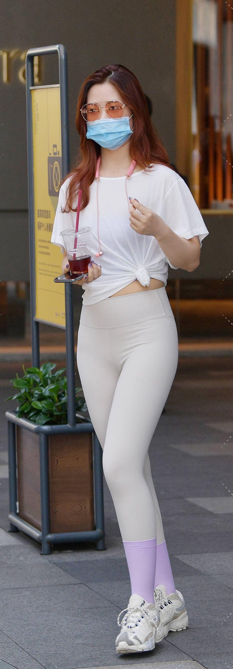 整套造型看似随性,实则暗藏心机:白T恤打结玩转层次,瑜伽裤无痕显瘦,彩色袜子点亮细节。将“松弛感”与“运动休闲风”完美融合,既舒适得像没刻意打扮,又时髦得让人移不开眼。