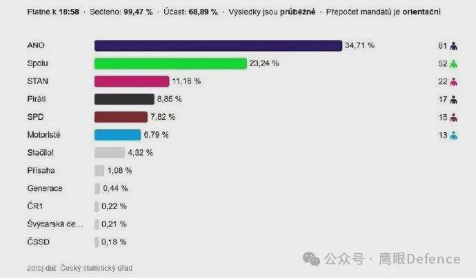 捷克议会选举尘埃落定,结果对乌克兰而言虽非最佳,但也并非全然不利。此次选举中,被外界称为“捷克川普”的安德烈·巴比什所领导的民粹主义中左翼政党“不满公民行动”(ANO)以35%的得票率脱颖而出,成功斩获81个席位。相比之下,现任中右翼联盟则失去了多数席位,面临着新的政治格局。