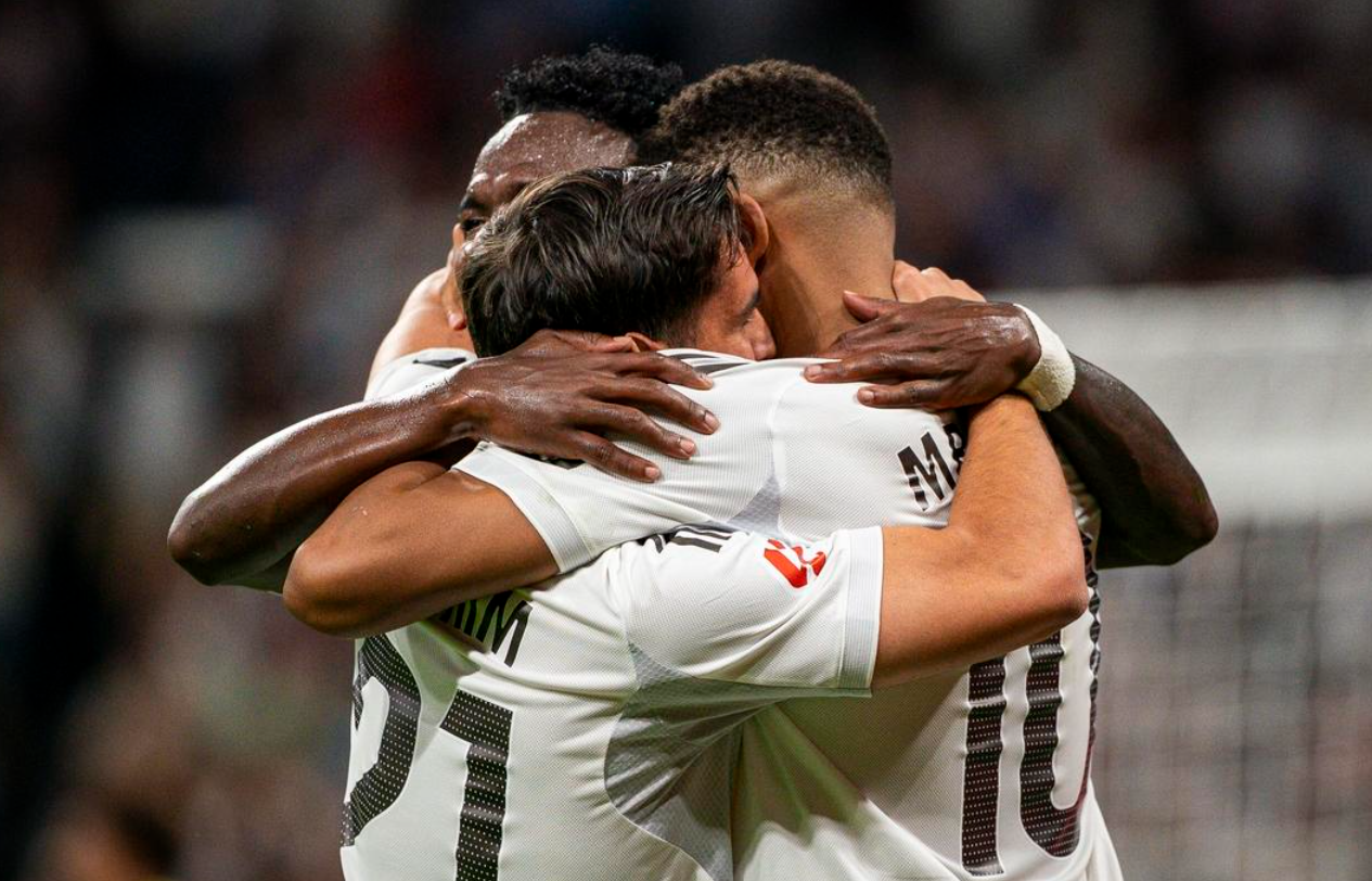 本场比赛,皇马主帅安切洛蒂排出4231阵型:姆巴佩担任单箭头,马斯坦托诺、居莱尔和维尼修斯组成进攻三叉戟,楚阿梅尼与塞瓦略斯搭档双后腰,后防线由巴尔韦德、米利唐、赫伊森和卡雷拉斯组成,库尔图瓦镇守球门。替补席上,罗德里戈、迪亚斯和贝林厄姆随时待命。