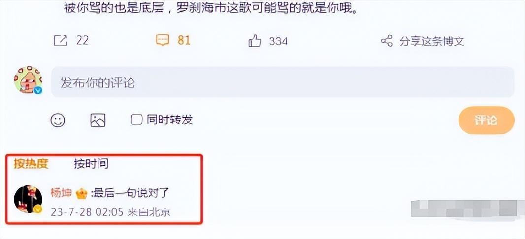杨坤则回应“最后一句说对了”,默认被讽刺,之后便不再发声。