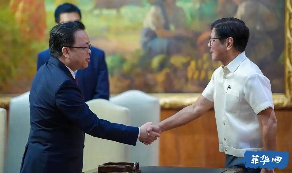 9月25日,菲律宾总统小马科斯(右)与即将离任的中国驻菲大使黄溪连举行会晤。菲华网