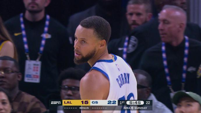 库里此役早早开启进攻模式,他首节出战8分钟已经高效5中4,其中外线三分3中2与罚球1中1。库里外线命中两记精彩三分,尤其是一度面对布朗尼的防守,库里在身体失衡情况下依然命中三分引发喝彩,也是单节就轰下11分。
