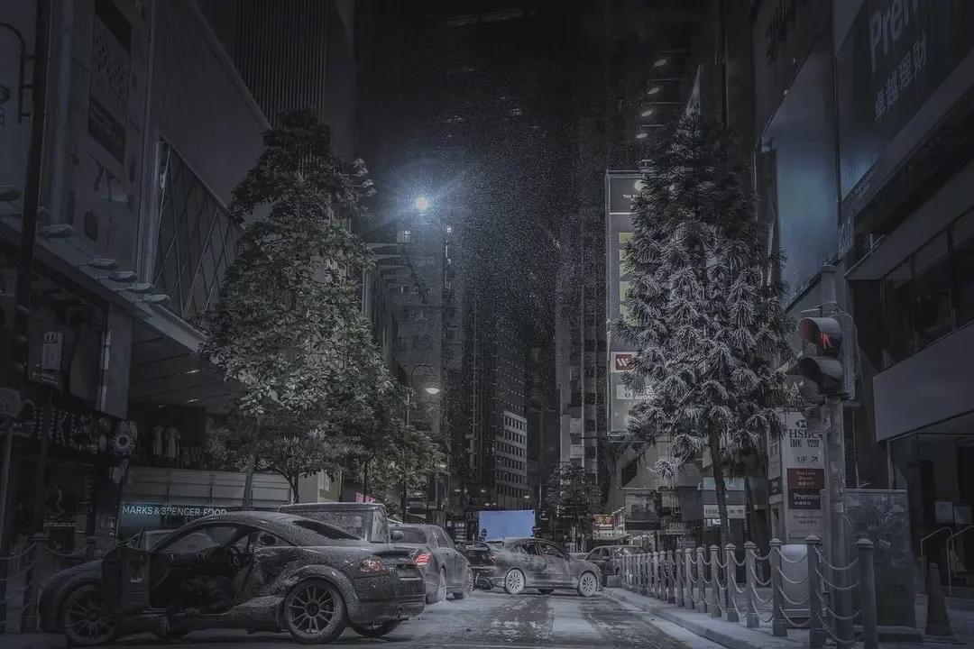 这里还有一个麦浚龙的私人情结或者说彩蛋,他在《僵尸》中曾借主角之口问过,“如果香港下雪会怎样?”总之,设定里的架空年代和魔幻背景,试图勾勒末世寓言的氛围感,将看似荒诞的故事合理化。