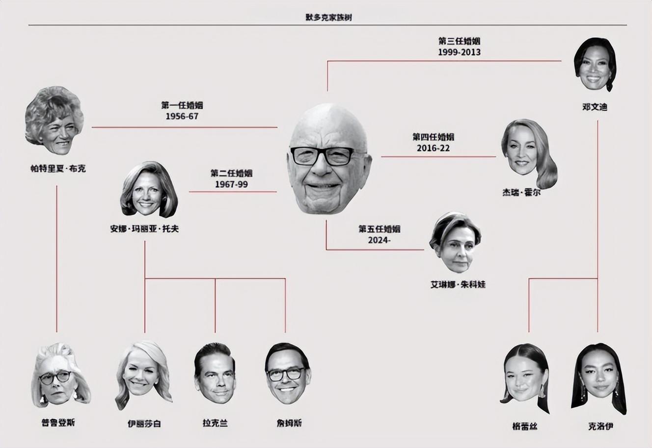 聊这件事之前,我们先简单了解下默多克这个老头究竟多有钱,以及他“一直结婚”衍生出来的庞大家族关系。