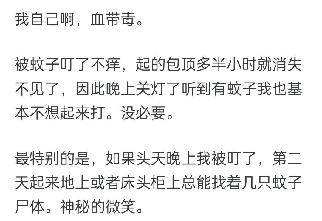 一位网友对自己的皮肤体质感到困惑:我脸上反复长痘,去看医生说我血少血热。我就是晚上被蚊子叮醒,抓出大包,早上醒来一点印子都没有。一个房间里只要有其他人在,蚊子绝对不会来叮我。所以是因为血毒吗?